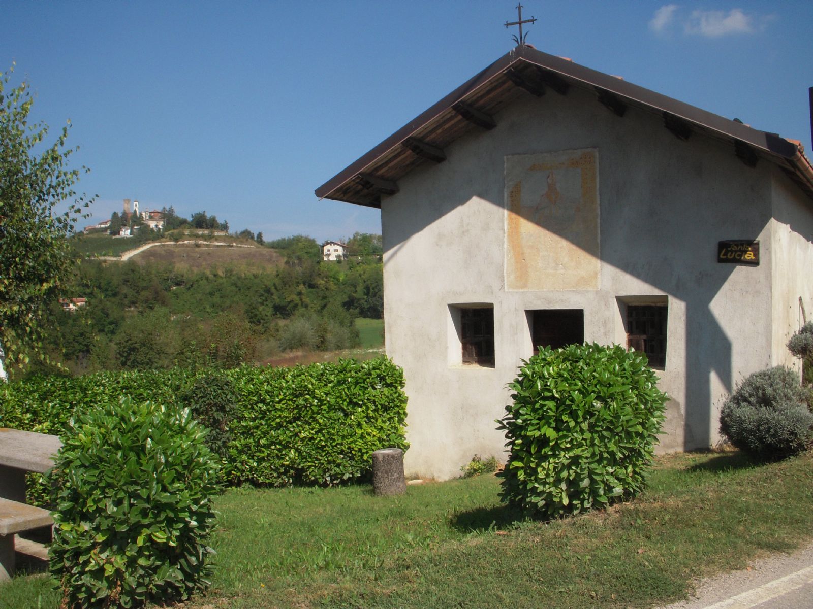 È di minime dimensioni, sulla facciata si trova un affresco rappresentante forse S. Cristoforo.